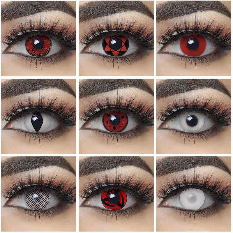 Name: Lentes de contacto para Cosplay, lentillas de Color rojo y blanco para ojos de Halloween, 1 par
